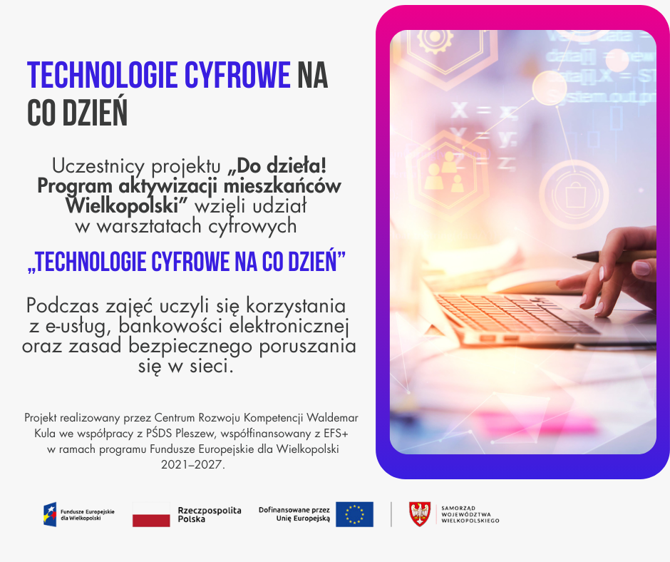 Uczestnicy projektu „Do dzieła! Program aktywizacji mieszkańców Wielkopolski” wzięli udział w warsztatach kompetencji cyfrowych „Technologie cyfrowe na co dzień”.