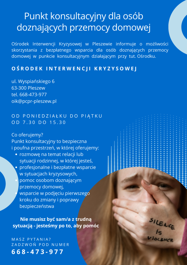Informujemy, że w związku z planowaną przebudową drogi powiatowej nr 4355P ul. Kazimierza Wielkiego w Pleszewie, w najbliższym czasie wystąpią utrudnienia w ruchu drogowym oraz w dostępie komunikacyjnym do instytucji zlokalizowanych przy tej ulicy, w tym do Powiatowego Centrum Pomocy Rodzinie w Pleszewie.