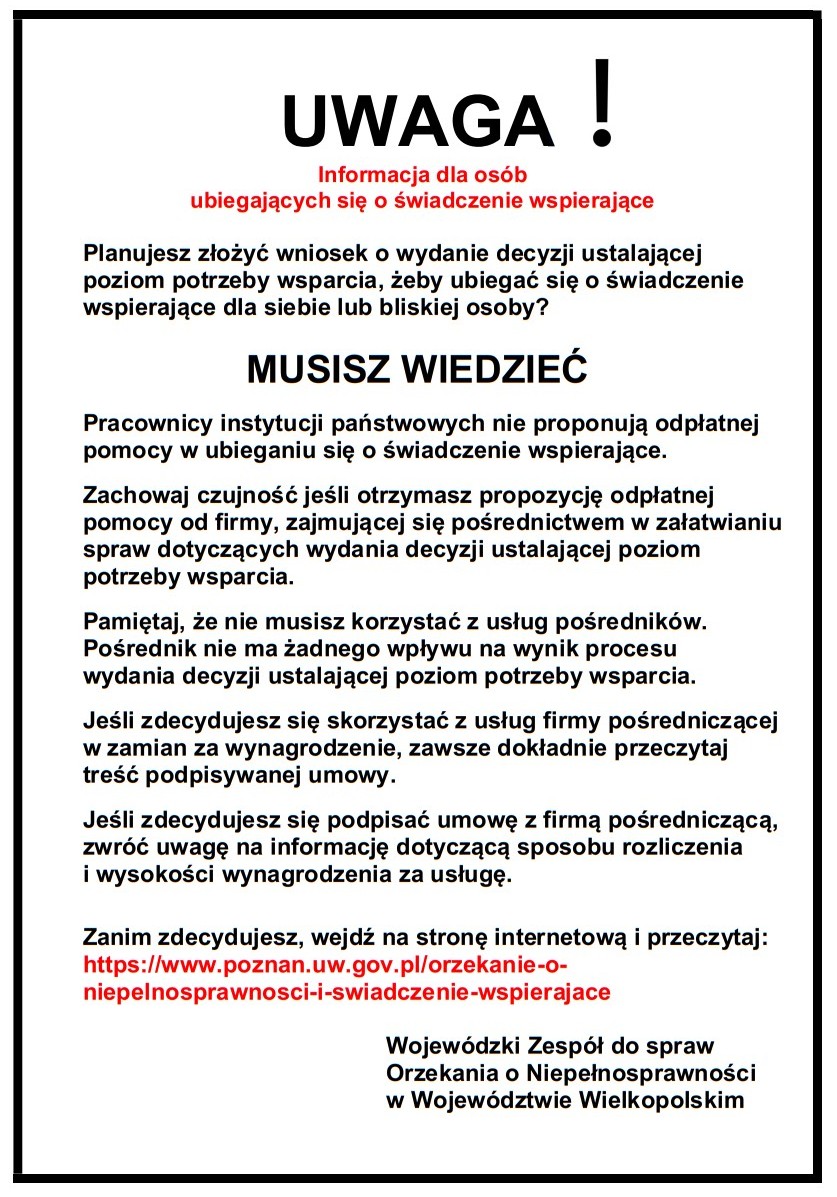 Informacja dla osób ubiegających się o świadczenie wspierające